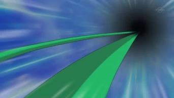 (Snivy usou o Vine Whip para pegar Oshawott, fazendo que Excadrill batesse na pedra)